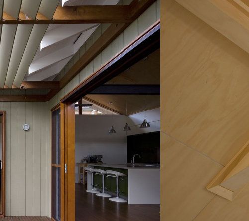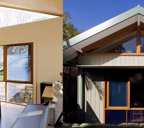 The best way forward was to re-build the rear section of the house to accommodate our new design. The rear of the house faces due north, which is excellent for passive design, however the fall of the land meant the house kind of squatted into the site. To overcome this challenge, we designed cathedral ceilings with gable windows for the new rooms. This increased the height of the space and improved natural light and passive solar gain, while shading devices provided protection for hot summer days. Cross-ventilation was an important design element to maximise the cooling effect of the summer north-easterly breeze, while high quality insulation was also added to maintain year-round thermal efficiency. Low ‘e’ glass was used for all windows, giving an efficiency improvement of around 30-40% over standard glass. All water fixtures and appliances are highly WELS rated, which contribute to minimum water usage, while rainwater is collected and stored in a 4,000 litre water tank, then re-used in toilets, washing machine and garden. Best-practice low and zero VOC products, low energy use lighting and appliances, and recycled and reclaimed timber was also used throughout this sustainable build to maximise health and environmental benefits.
